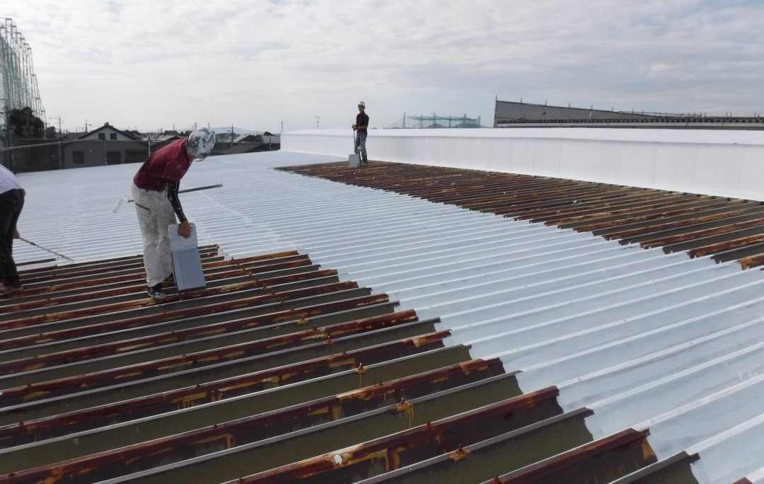 折板屋根の錆の進行抑制のため、暑さ対策を兼ねた遮熱塗装をご検討されておりました。
